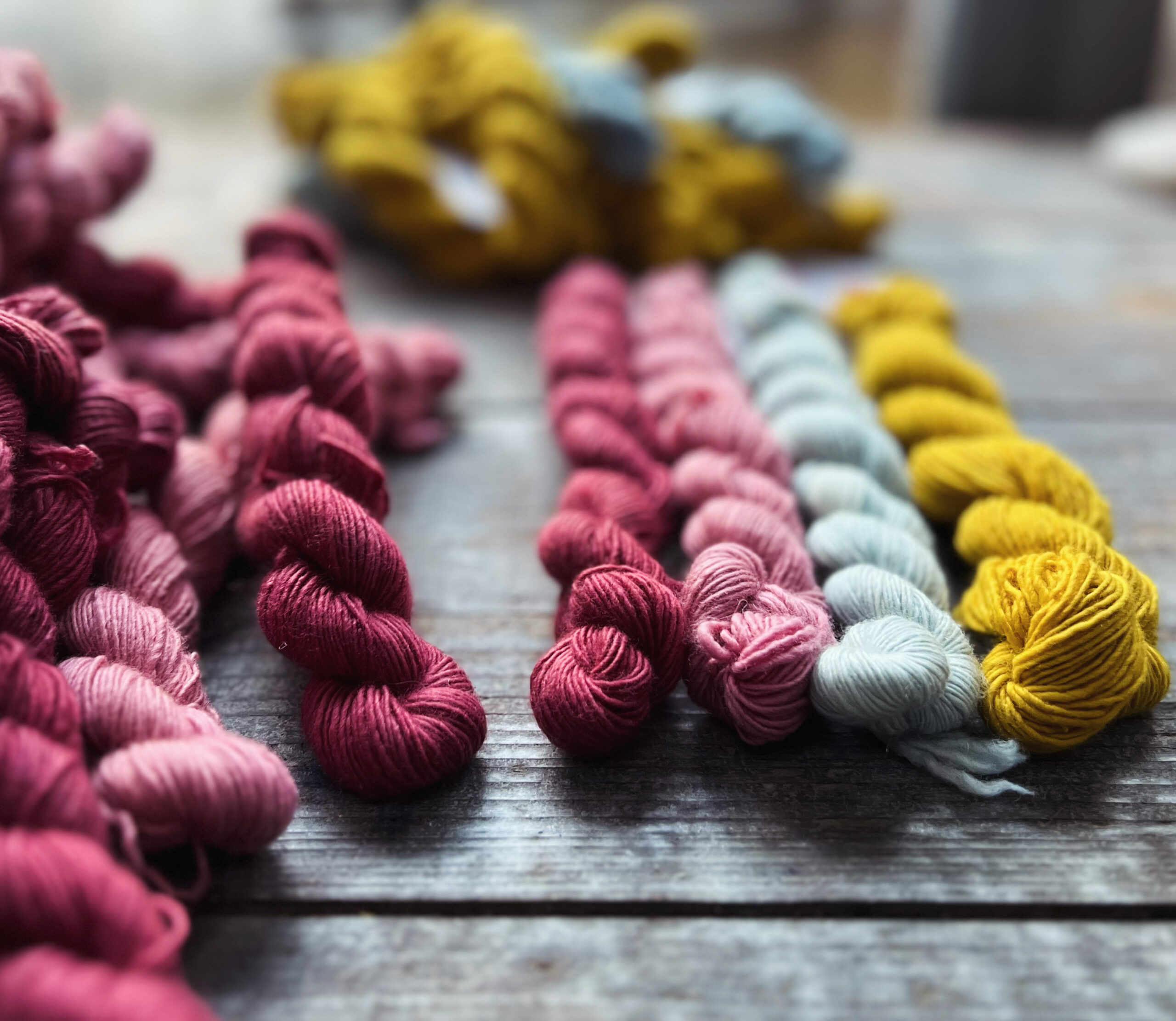 Meine Garne werden von Hand mit natürlichen, meist pflanzlichen Zutaten gefärbt.